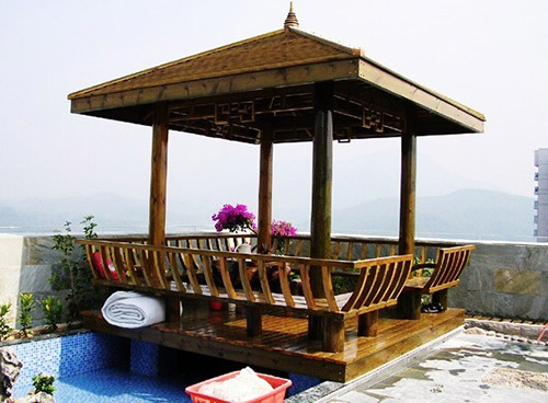 防腐木亭子成了為園林景觀空間和自然山水增添美色的重要點(diǎn)綴建筑物。防腐木亭子的作用一方面是點(diǎn)綴園林景觀空間、提升環(huán)境層次,另一方面是解決人們?cè)诼糜涡蓍e中駐足休息,納涼避雨、眺望景色的需要。