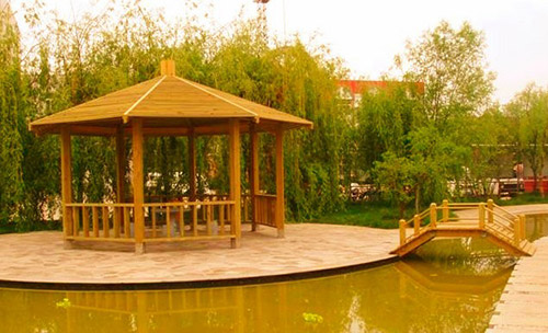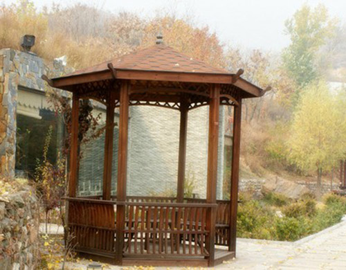 節(jié)能性:亭子的能源效益是由構(gòu)成該亭子外殼的結(jié)構(gòu)體系和材料的保溫特性所決定的。木結(jié)構(gòu)的墻體和屋架體系由結(jié)構(gòu)木方、板材、保溫棉填充而成,測試評估表明150mm厚的木結(jié)構(gòu)墻體,其保溫能力相當于610mm厚的磚墻,木結(jié)構(gòu)建筑相當于混凝土結(jié)構(gòu)建筑可節(jié)能50%-70%。